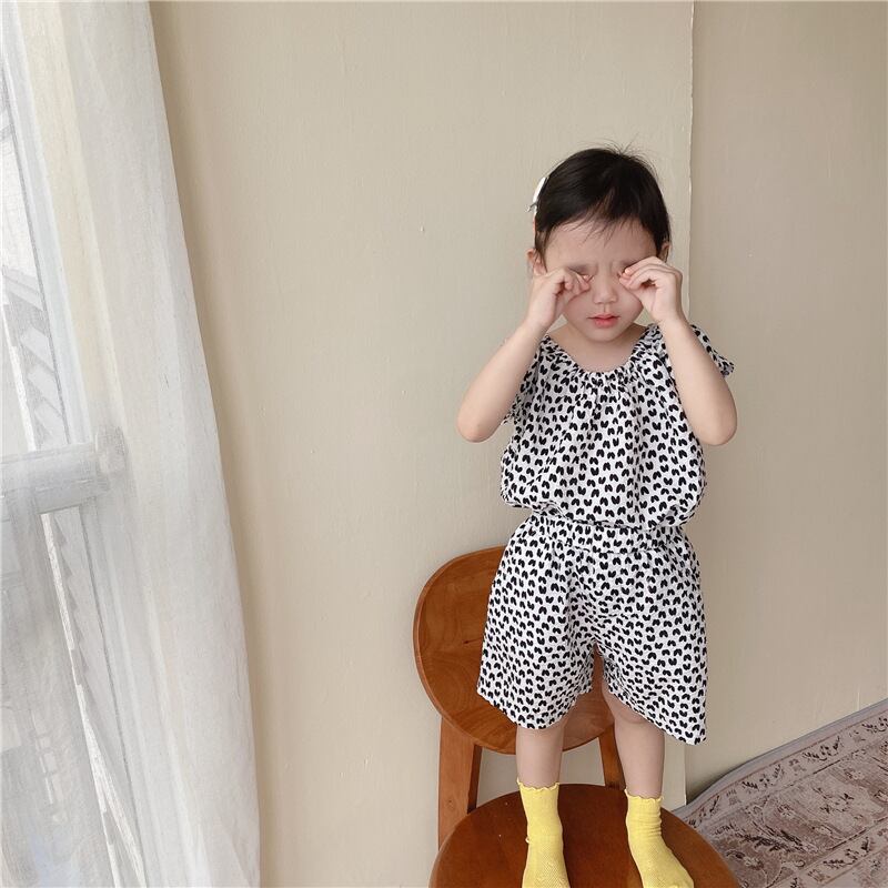 《取寄》 ハート総柄セットアップ(全2色) ADBB 韓国子供服 上下セット セット ヒョウ柄 アニマル柄 総柄