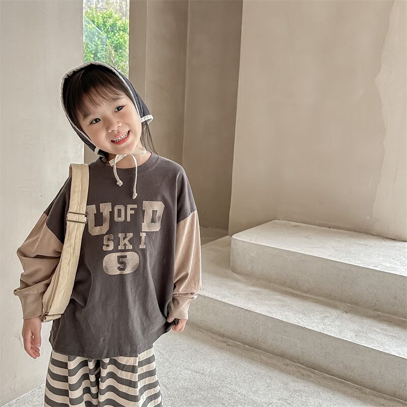 《取寄》 袖切替ロングTシャツ (全2色) ADBB 韓国子供服 重ね着風