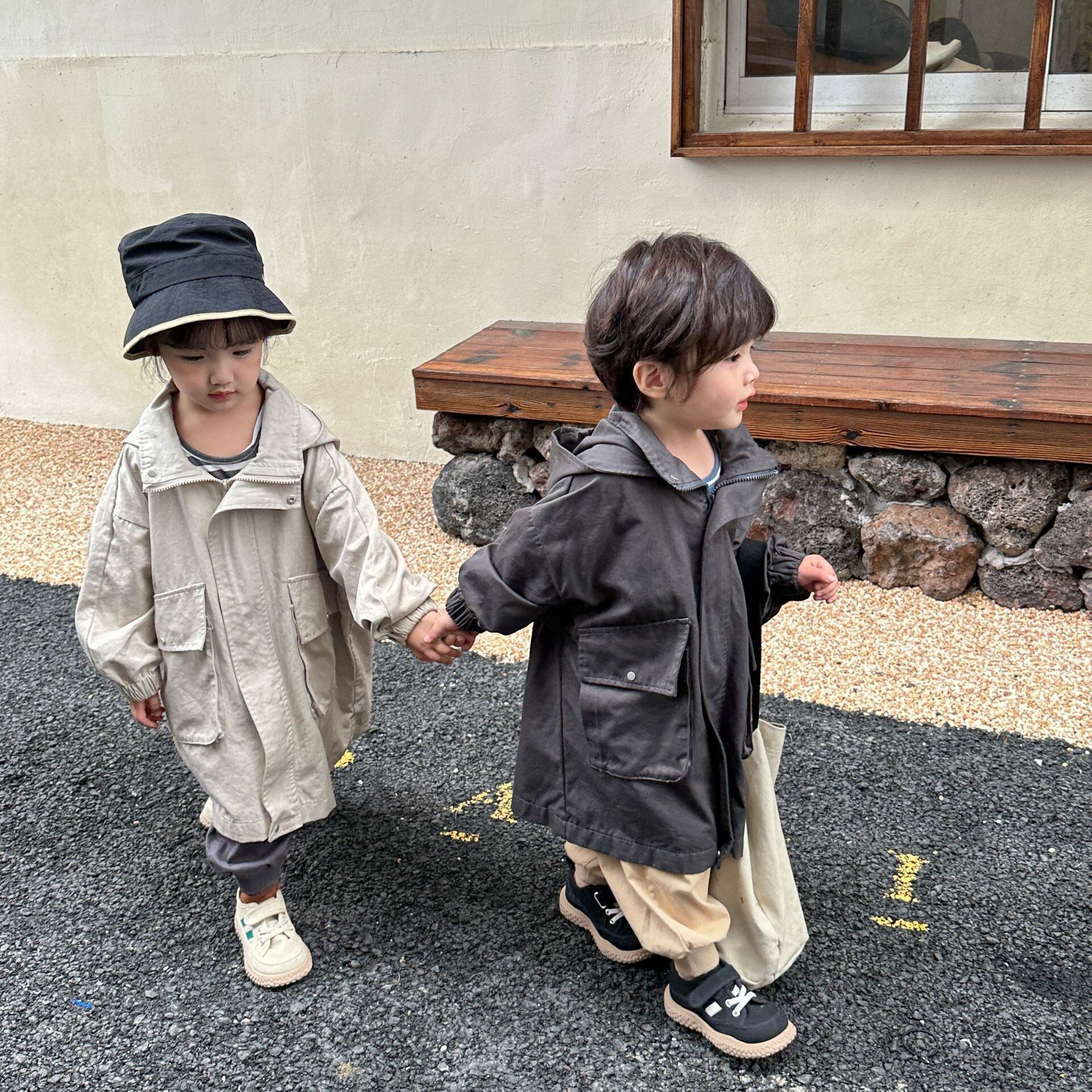 《取寄》 ミリタリーモッズコート (オフホワイト/チャコール) QQMM 韓国子供服 アウター ジャケット コート ロングコート ミリタリー(80-150cm)