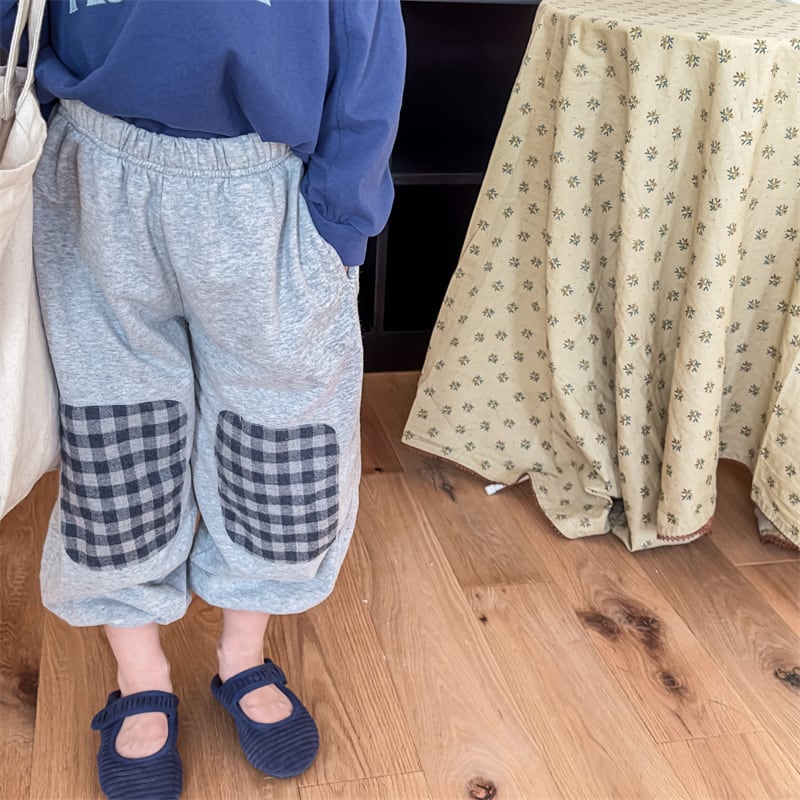 《取寄》 チェック膝パッチスウェットパンツ (全2色) ADBB 韓国子供服 ジャージ ズボン