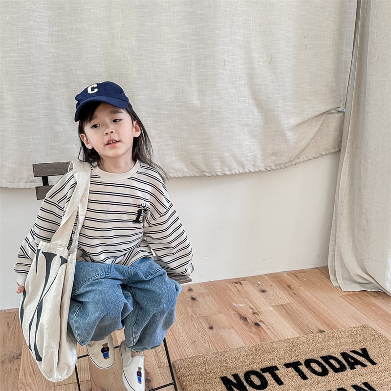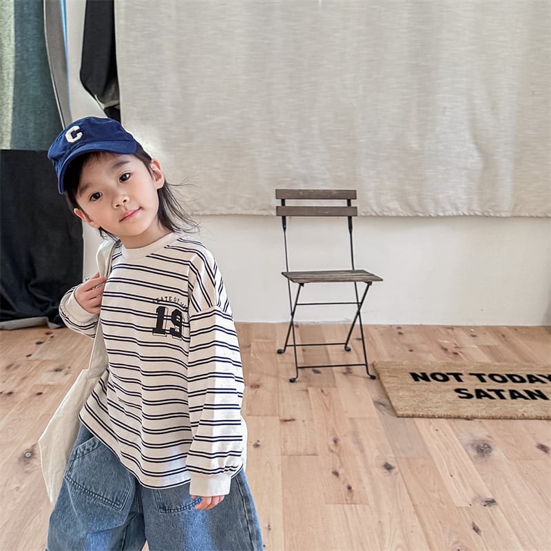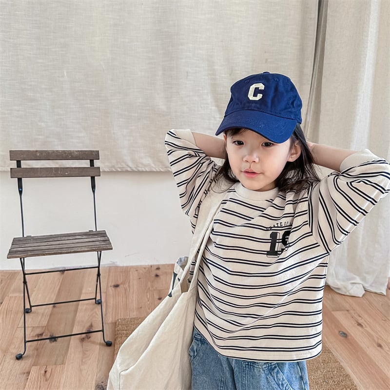 《取寄》 ナンバリングボーダートップス (全2色) ADBB 韓国子供服 ロンT カットソー
