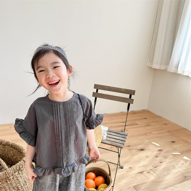 《取寄》 プリーツフリルトップス (全2色) ADBB 韓国子供服 Tシャツ カットソー フリル ドレープ プリーツ 女の子