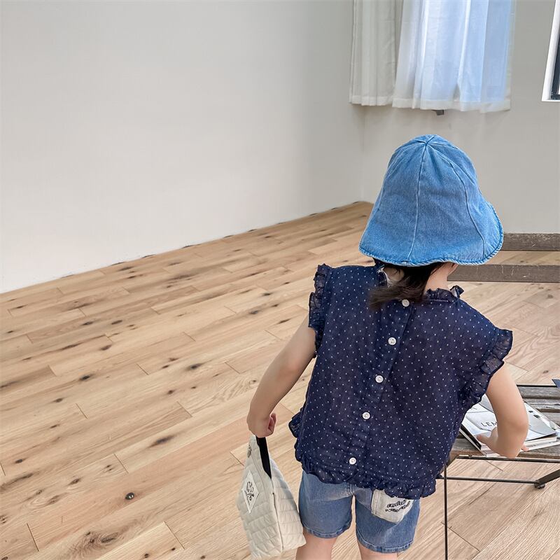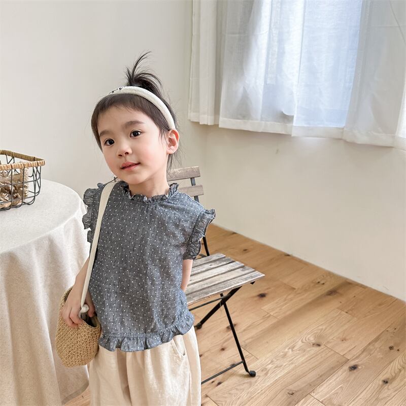 《取寄》 水玉フリルトップス (全2色) ADBB 韓国子供服 ドット ブラウス