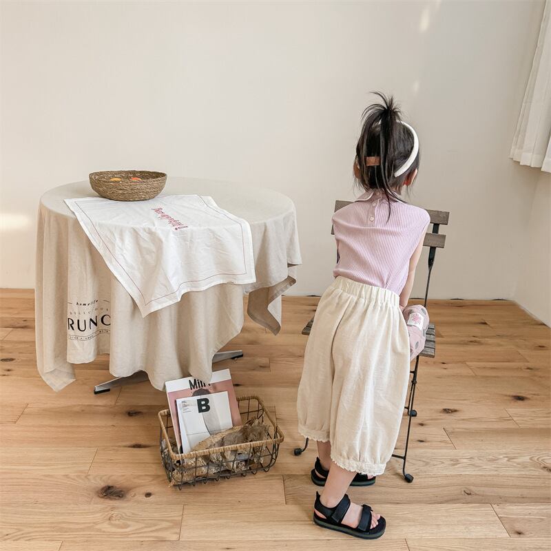 《取寄》 裾レース半端丈パンツ (全2色) ADBB 韓国子供服 ズボン パンツ 女の子