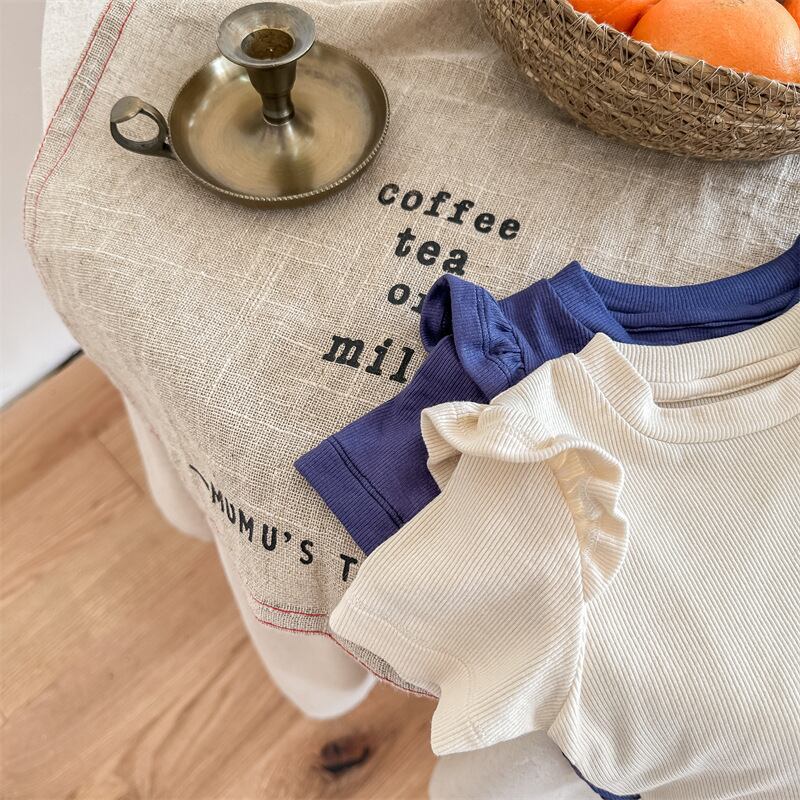 《取寄》 フリルショルダーリブTシャツ (全2色) ADBB 韓国子供服 トップス カットソー