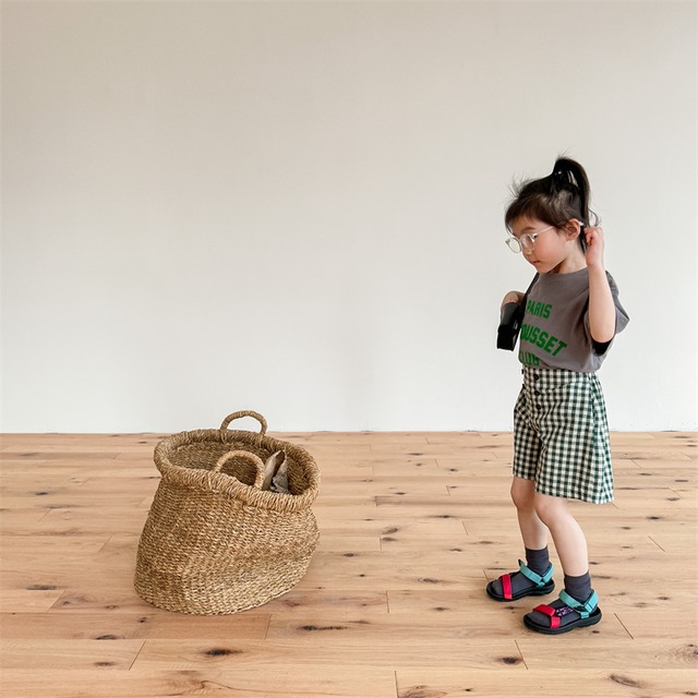 《取寄》 ギンガムチェックのハイウエストショートパンツ (全2色) ADBB 韓国子供服 ハーフパンツ 短パン