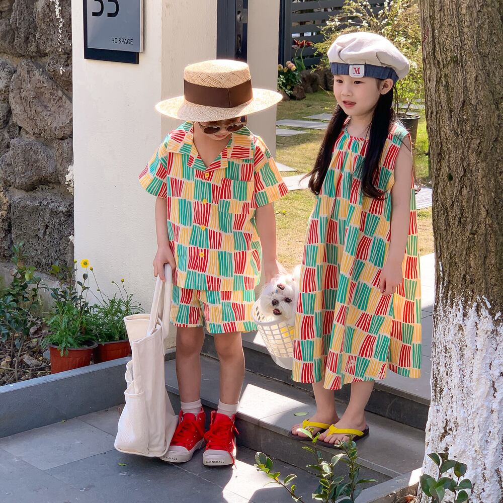 《取寄》 ラスタカラーストライプ セットアップとワンピース KMAI 韓国子供服 リンクコーデ