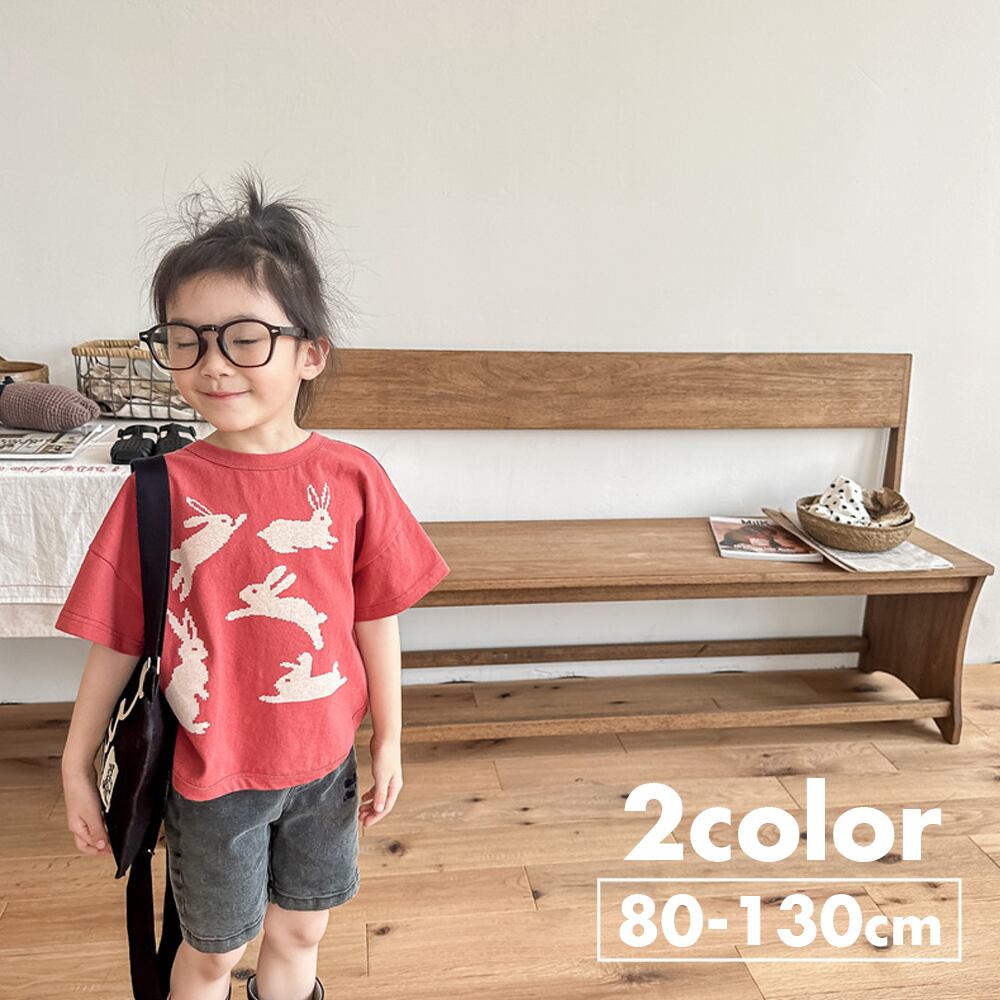 《取寄》 ラビットTシャツ (全2色) ADBB 韓国子供服 トップス カットソー 半袖 ウサギ 動物