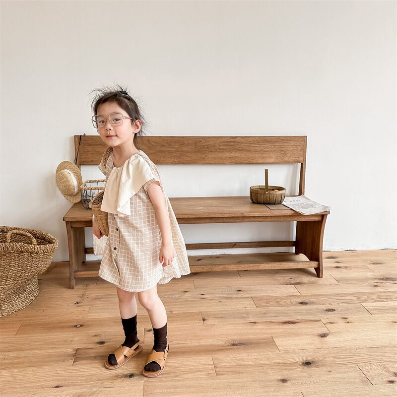 《取寄》 アシメフリルのグリッドチェックワンピース (全2色) ADBB 韓国子供服 女の子