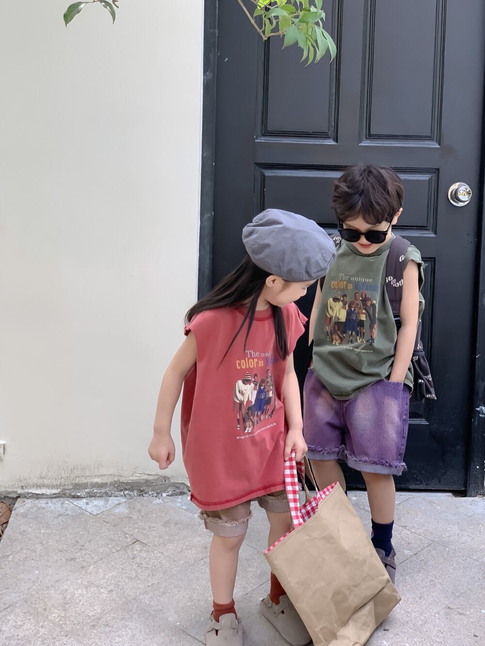 《取寄》アメリカンホームドラマノースリーブTシャツ (全2色) KMAI 韓国子供服 タンクトップ