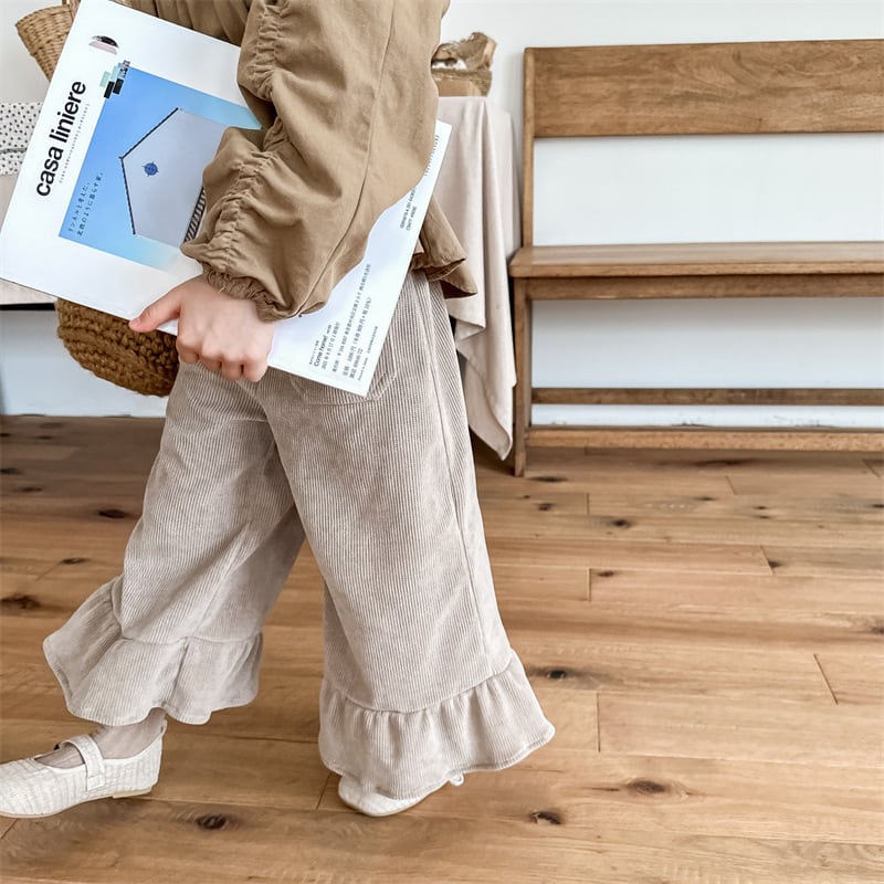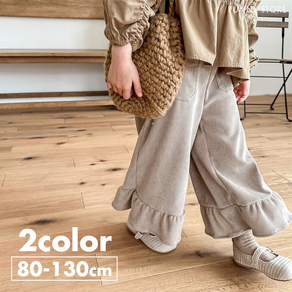 《取寄》 ベロア調フレアパンツ (全2色) ADBB 2023秋 韓国子供服 フリル コーデュロイ 女の子