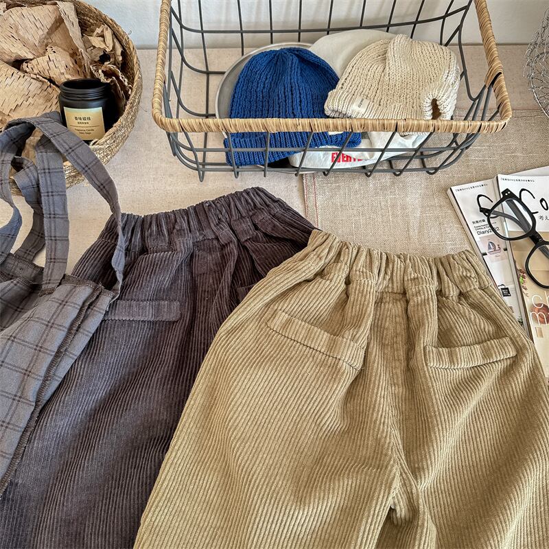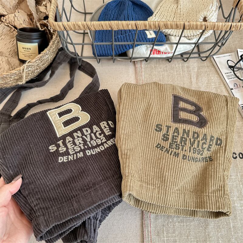 《取寄》 コーデュロイアンクルワイドパンツ (全2色) ADBB 2023秋 韓国子供服 英字 ロゴパンツ タックパンツ