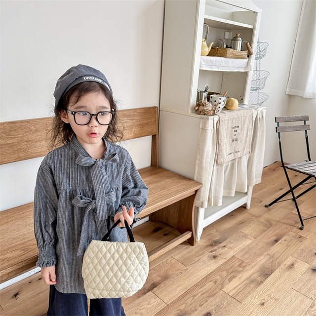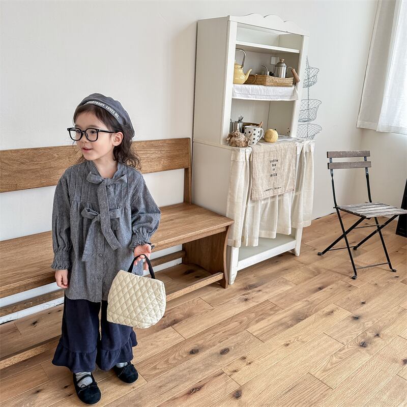 《取寄》 ノーカラーダブルリボンブラウス (全2色) ADBB 2023秋 韓国子供服 ボウタイブラウス リボンタイ 女の子