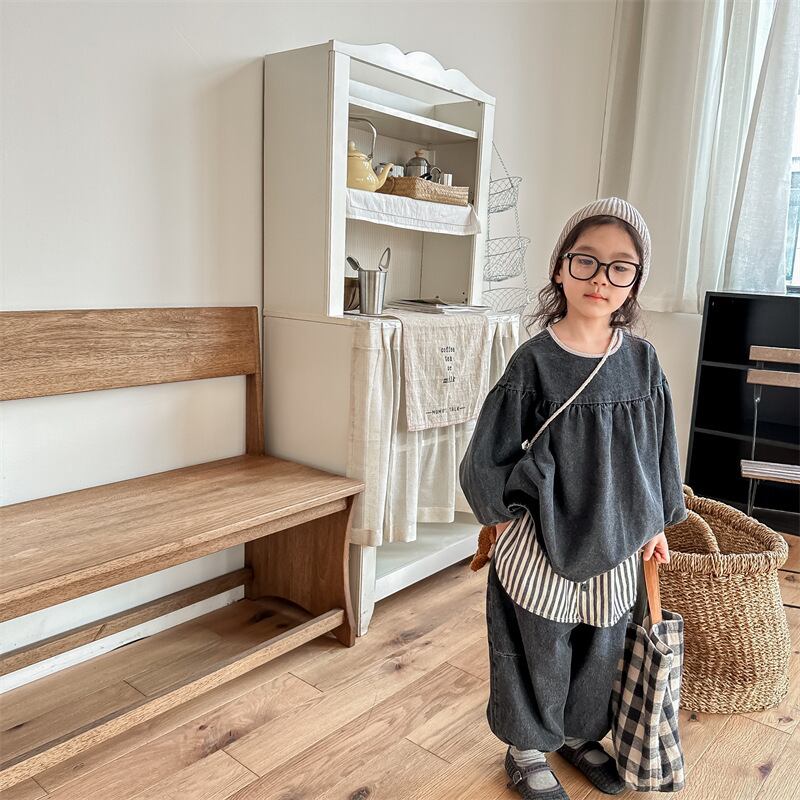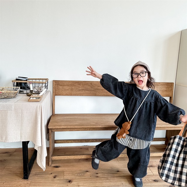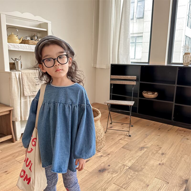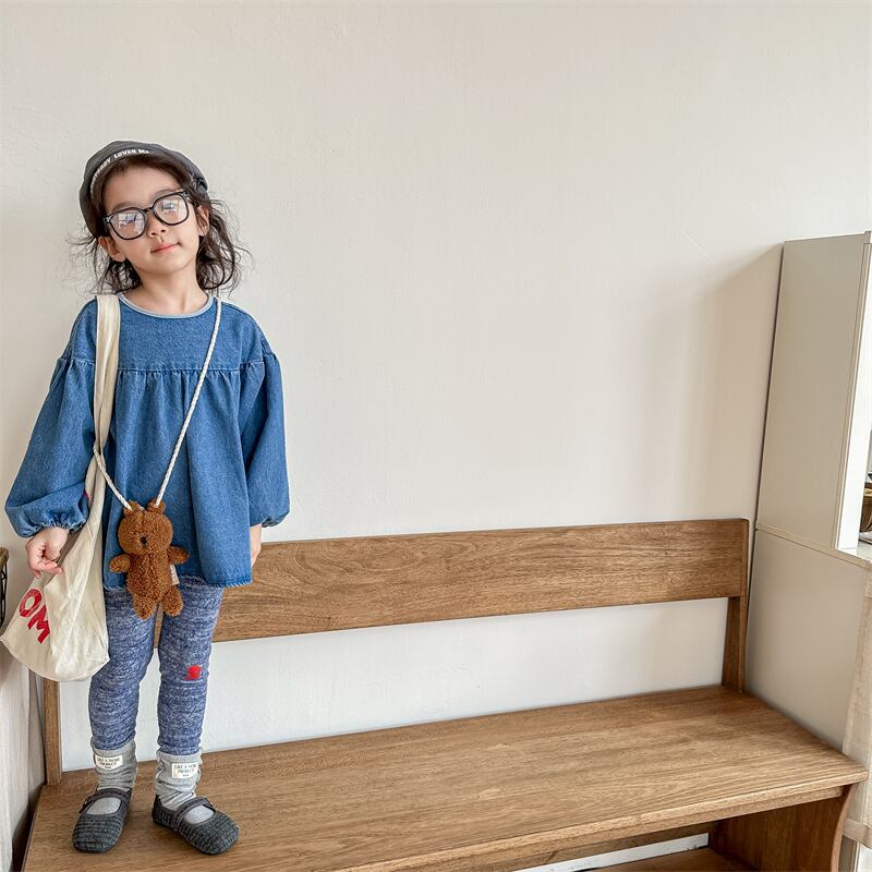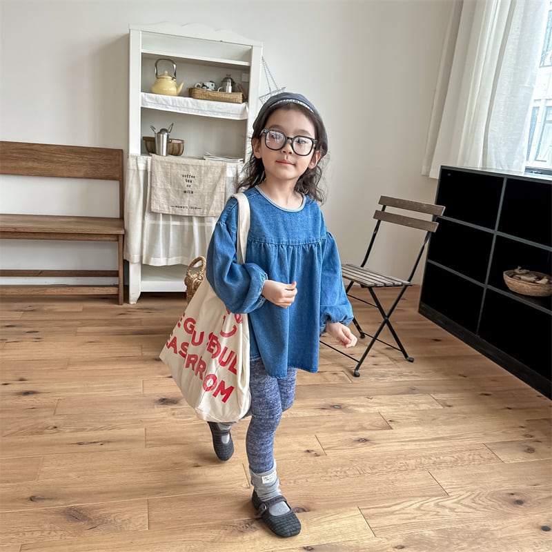 《取寄》 デニムパフスリーブトップス (全2色) ADBB 2023秋 韓国子供服 ぽわん袖 カットソー 女の子
