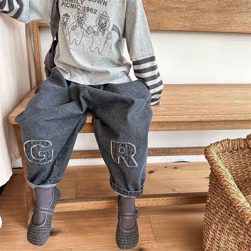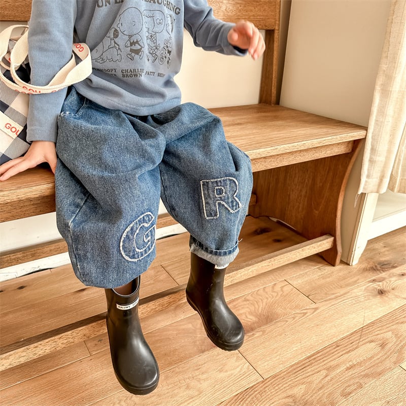 《取寄》 アルファベットロゴデニムパンツ (全2色) ADBB 2023秋 韓国子供服 ジーンズ ジーパン サルエル