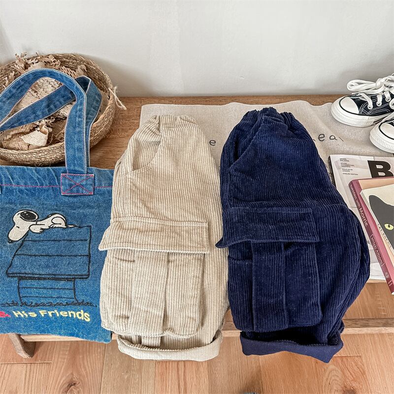 《取寄》 コーデュロイマルチポケットカーゴパンツ (全2色) ADBB 2023秋 韓国子供服 ミリタリーパンツ ワイドパンツ