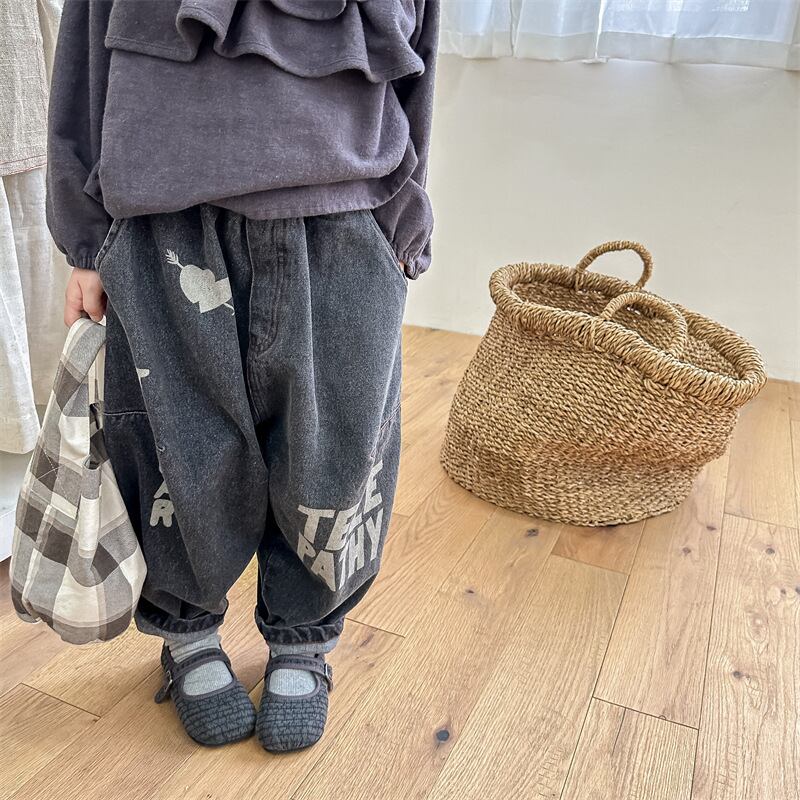《取寄》 ペイントデニムハーレムパンツ (全2色) ADBB 2023秋 韓国子供服 サルエル ジーパン ジーンズ