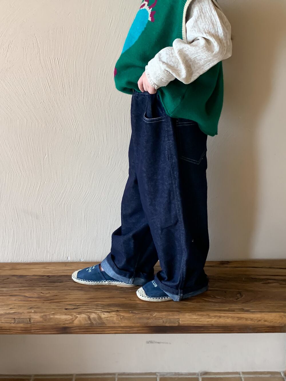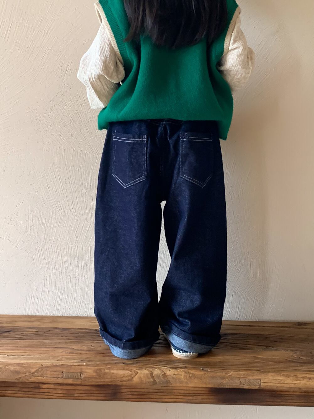 《取寄》 インディゴデニムパンツ KMAI 2023秋 韓国子供服 ボトムス パンツ ワイドパンツ オーバーサイズ ジーンズ ジーパン 男の子 女の子