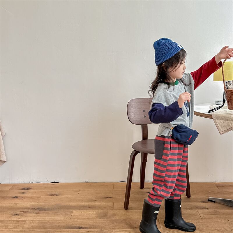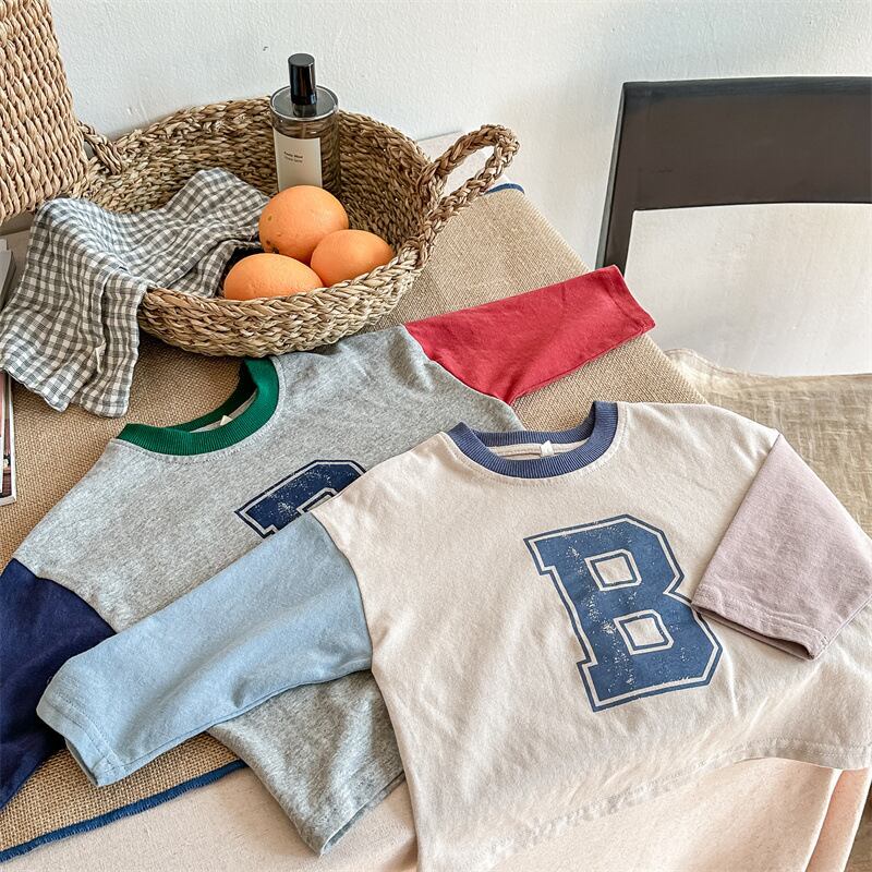 《取寄》 袖切替アルファベットロゴTシャツ (全2色) ADBB 2024春 韓国子供服 ロンT 長袖 ロングTシャツ カットソー