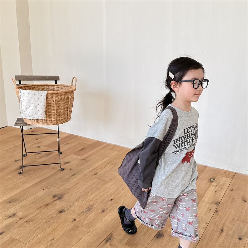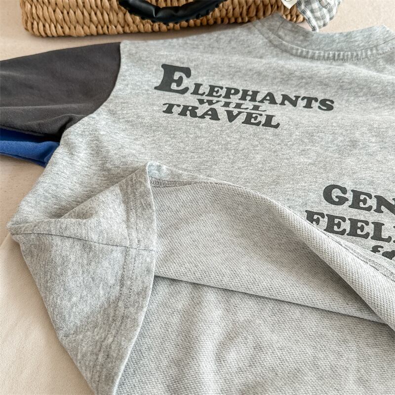 《取寄》 袖切替両面プリントエレファントTシャツ (全2色) ADBB 2024春 韓国子供服 ロンT 長袖 ロングTシャツ カットソー