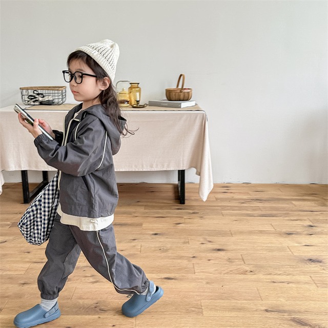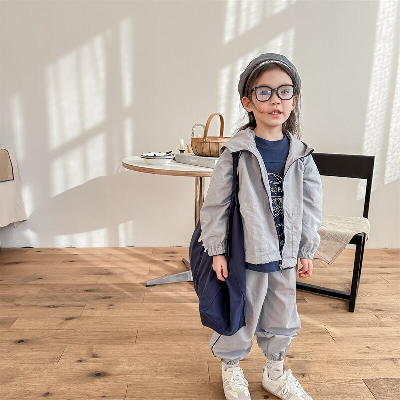 《取寄》 シンプルスポカジセットアップ (全2色) ADBB 2024春 韓国子供服 2点セット 上下セット ジャージ スポーツウェア ジップアップ トラックスーツ