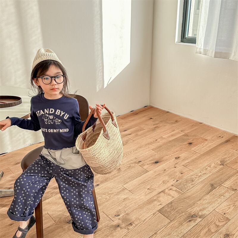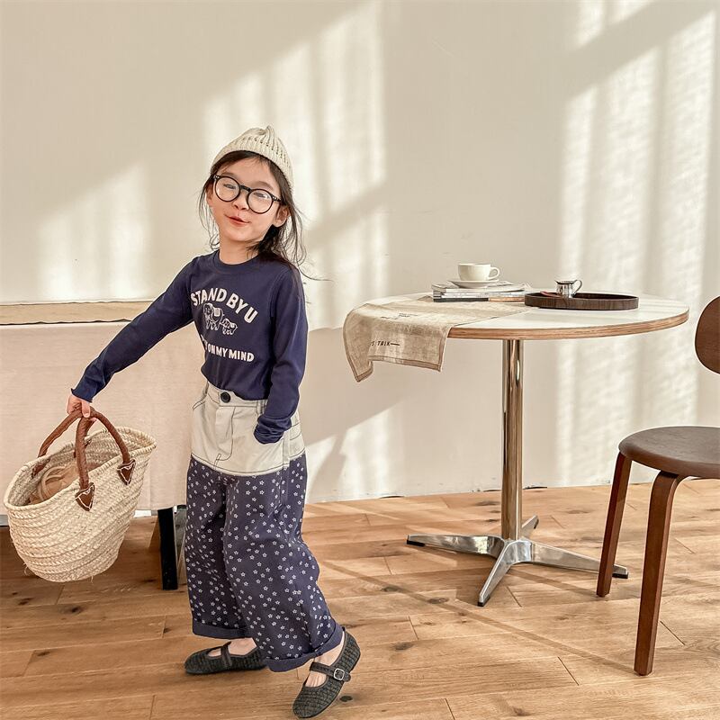 《取寄》 カラー切替小花柄パンツ (全2色) ADBB 2024春 韓国子供服 フラワー 花柄 コットンパンツ バイカラー ストレートパンツ