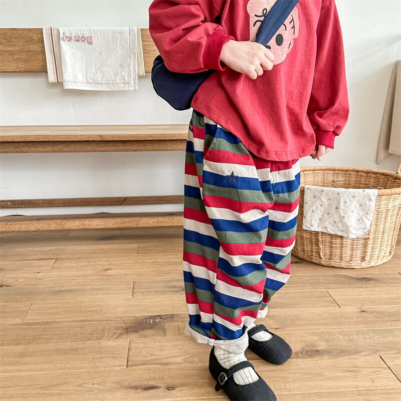 《取寄》 マルチボーダーパンツ (全2色) ADBB 2024春 韓国子供服 ミリタリーパンツ 星 スター コットンパンツ ズボン