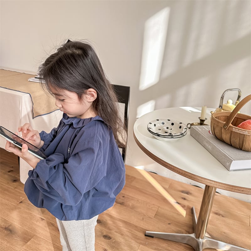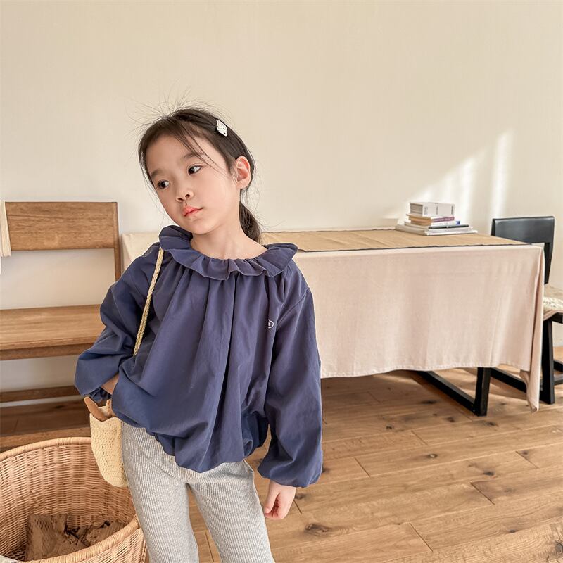 《取寄》 フリル襟バルーントップス (全2色) ADBB 2024春 韓国子供服 ぽわん袖 ランタンスリーブ パフスリーブ ハート かわいい 女の子