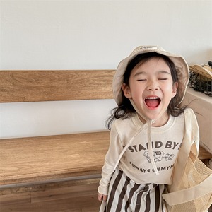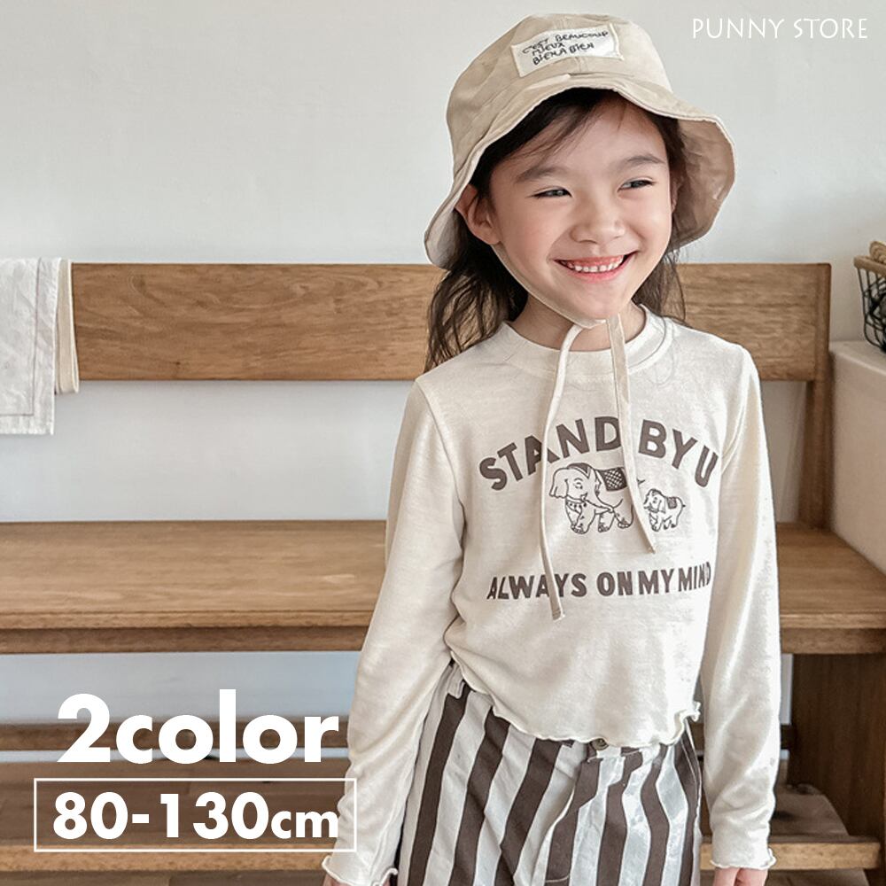 《取寄》 裾フリルプリントTシャツ (全2色) ADBB 2024春 韓国子供服 カットソー トップス ゾウ フリル ストレッチ ロングTシャツ 長袖