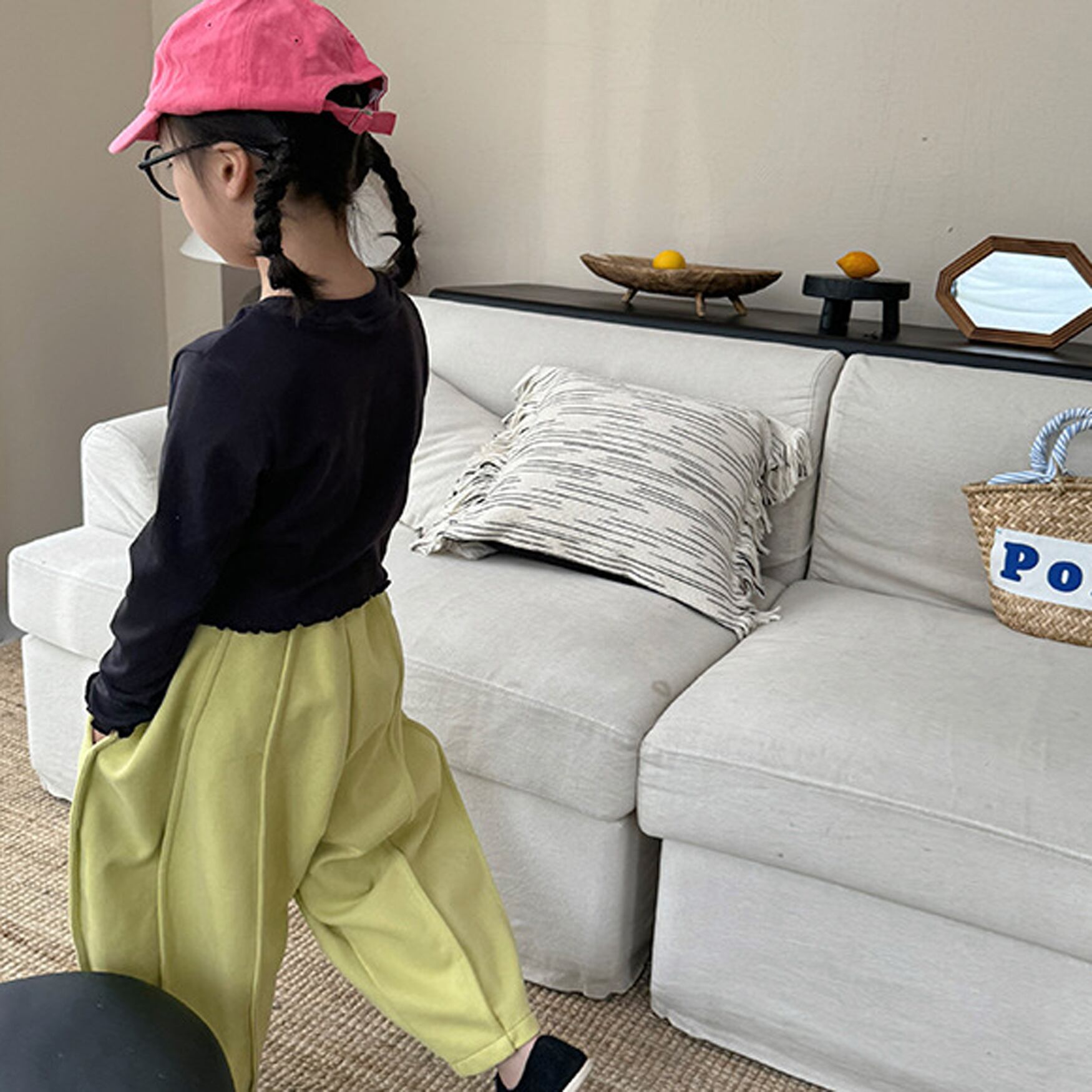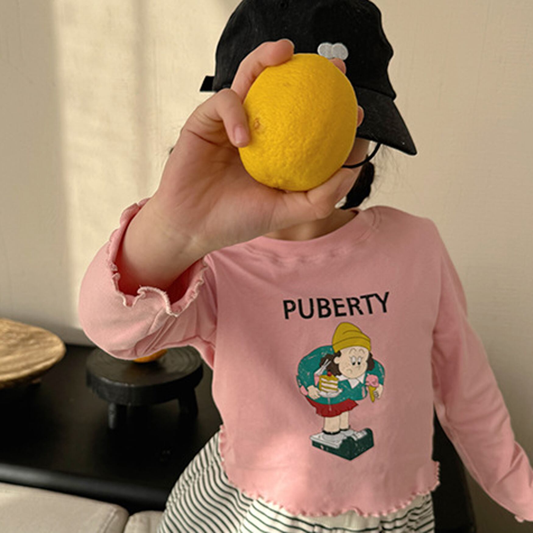 《取寄》 裾フリルUネックプリントTシャツ (全4色) Bobi 2024春 韓国子供服 長袖 ロンT カットソー トップス フリル プリントT