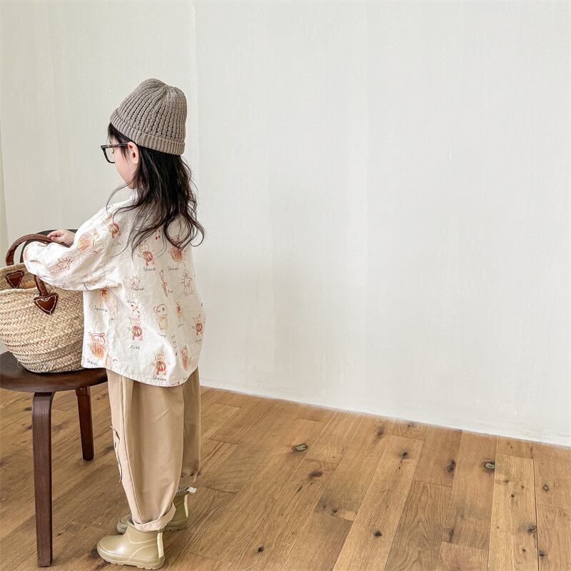 《取寄》 落書きクマさんワークシャツ (全2色) ADBB 2024春 韓国子供服 テディベア 熊 お絵描き ミリタリー 長袖 トップス