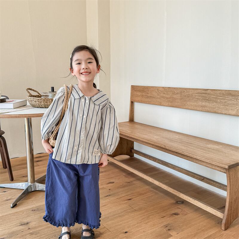 《取寄》 セーラー襟ストライプブラウス (全2色) ADBB 2024春 韓国子供服 シャツ トップス 刺繍