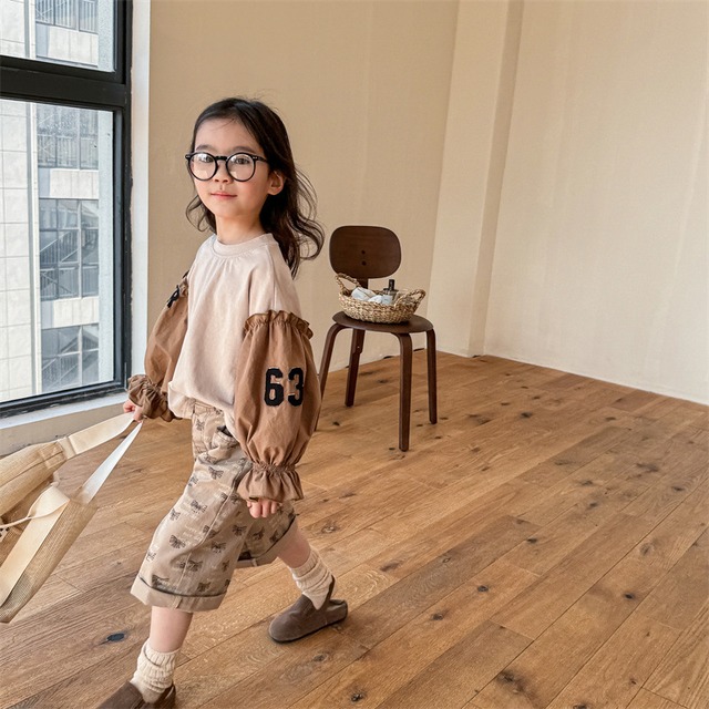 《取寄》 袖切替キャンディースリーブトップス (全2色) ADBB 2024春 韓国子供服 カットソー 長袖 パフスリーブ アメカジ