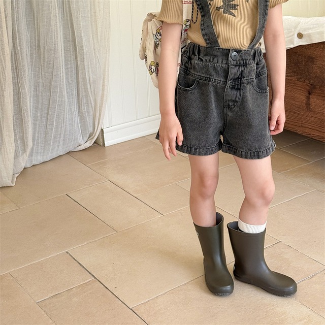 《取寄》 サスペンダーデニムショートパンツ (全2色) ADBB 2024夏 韓国子供服 サロペットパンツ 短パン サス付きパンツ