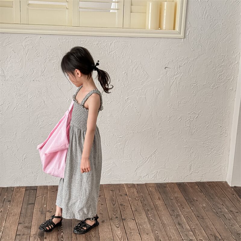《取寄》 シャーリングオールインワン (全2色) ADBB 2024夏 韓国子供服 ノースリーブ サロペットパンツ ジャンプスーツ 女の子