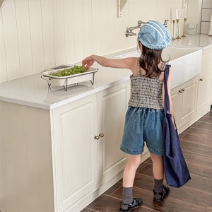 《取寄》 チェック柄シャーリングキャミトップス (全2色) ADBB 2024夏 韓国子供服 キャミソール ブラトップ ノースリーブ インナー 女の子