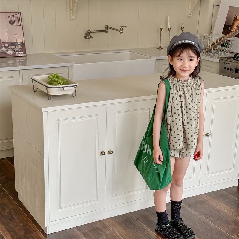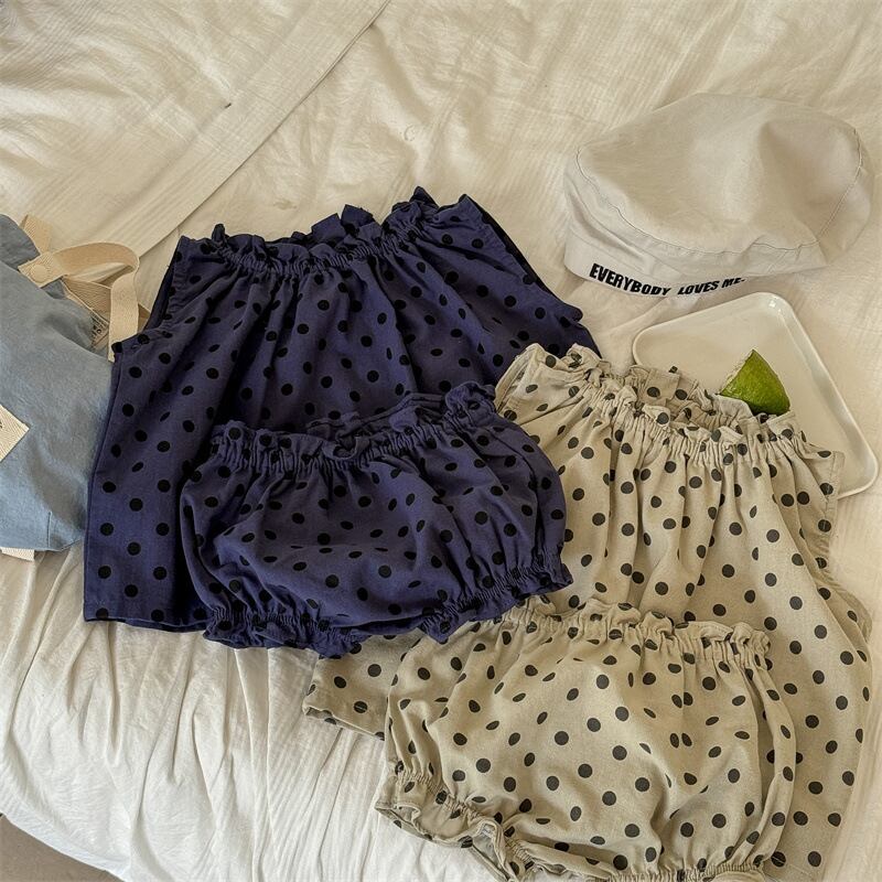 《取寄》 ドットのノースリーブセットアップ (全2色) ADBB 2024夏 韓国子供服 水玉 ブルマ かぼちゃパンツ フリル