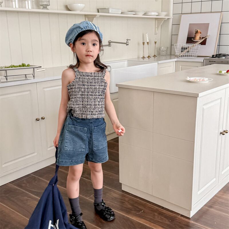 《取寄》 ハーフデニムベイカーパンツ (全2色) ADBB 2024夏 韓国子供服 ショートパンツ 短パン 半パン デニム
