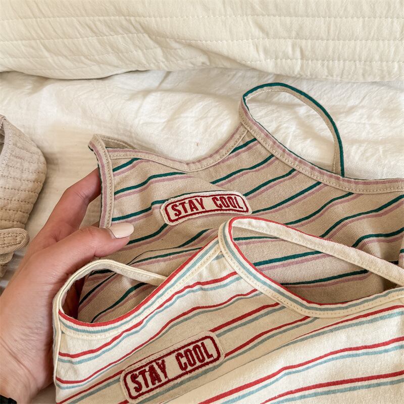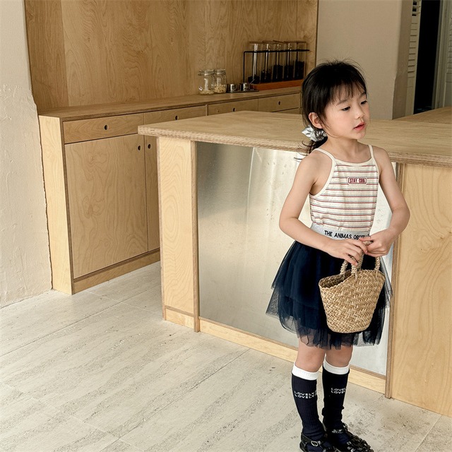 《取寄》 ロゴボーダーキャミソール (全2色) ADBB 2024夏 韓国子供服 ノースリーブ キャミ インナー トップス