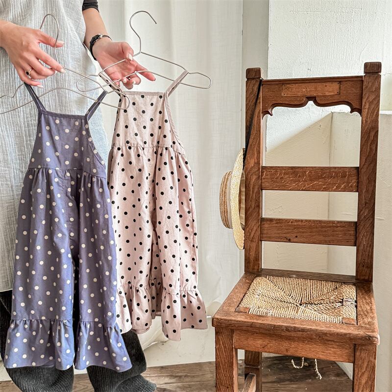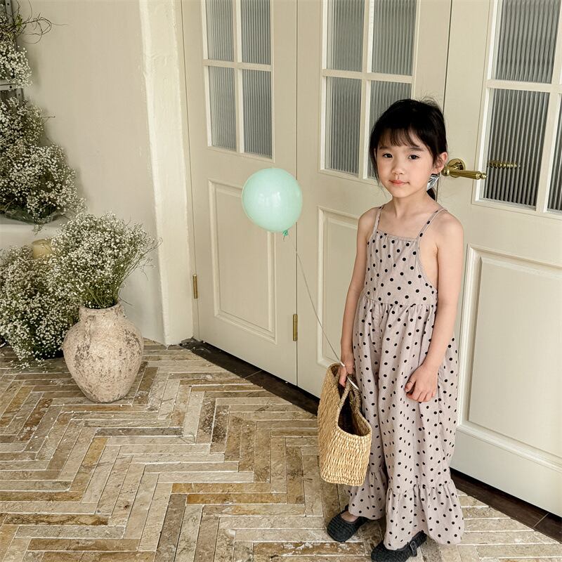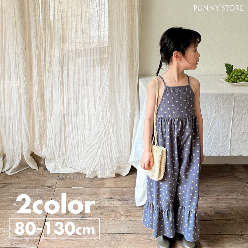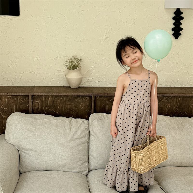 《取寄》 水玉オールインワン (全2色) ADBB 2024夏 韓国子供服 キャミソールジャンプスーツ サロペット ドット フレアパンツ 女の子