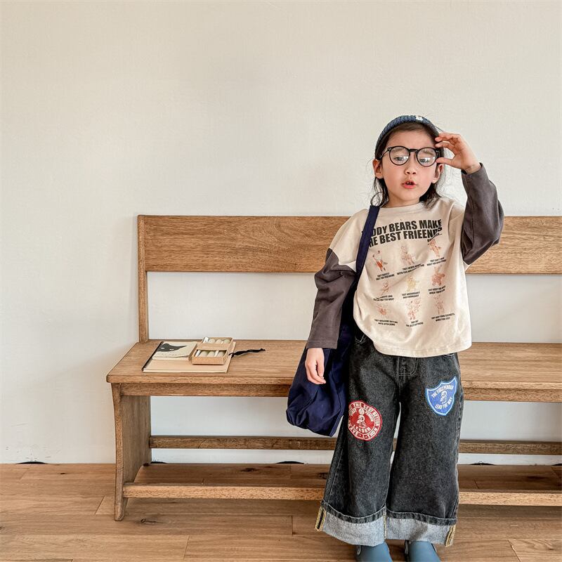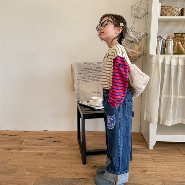 《取寄》 ワッペンロールアップデニムパンツ (全2色) ADBB 2024夏 韓国子供服 ボトムス ジーパン ジーンズ ズボン