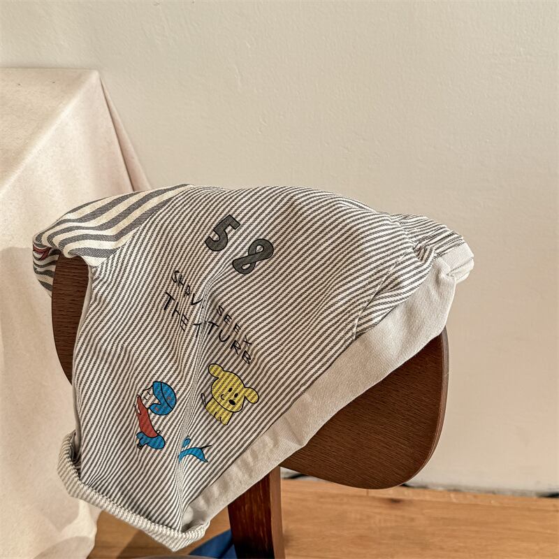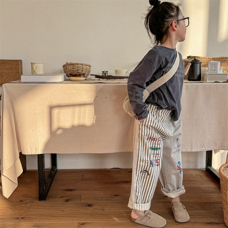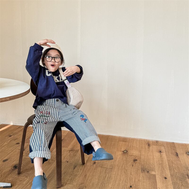 《取寄》 落書きアシンメトリーストライプパンツ (全2色) ADBB 2024夏 韓国子供服 ボトムス ヒッコリー ジーパン ジーンズ ズボン