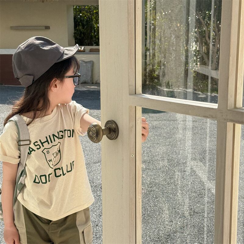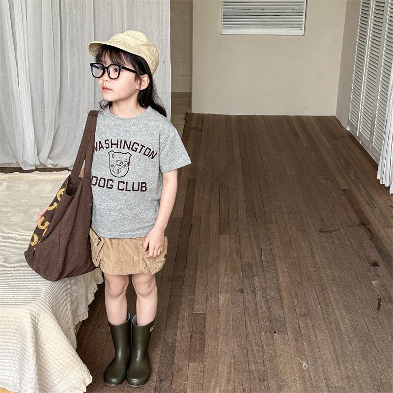 《取寄》 エンブレムプリントTシャツ (全3色) ADBB 2024夏 韓国子供服 プリントT カットソー トップス アメカジ