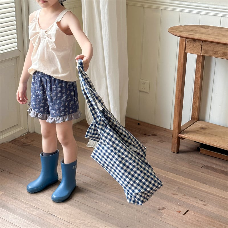 《取寄》 コットンリネンの花柄ショートパンツ (全2色) ADBB 2024夏 韓国子供服 ショーツ 短パン フラワー フリル 女の子
