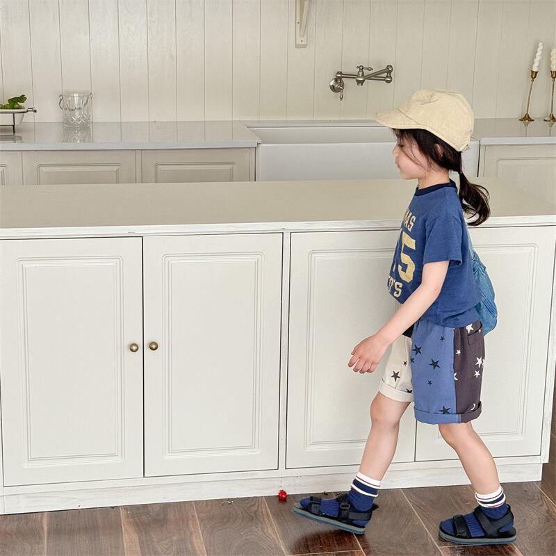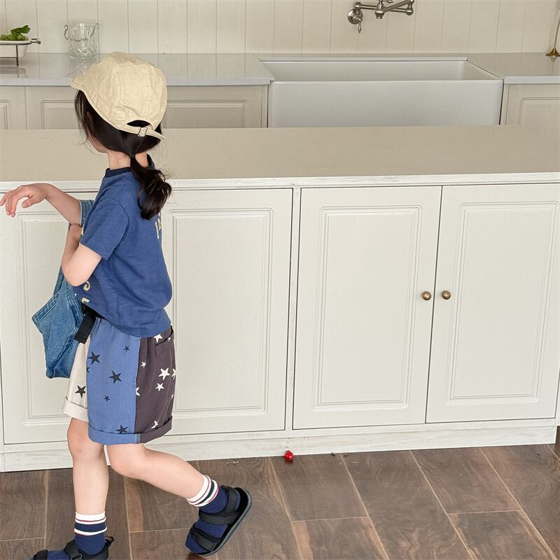 《取寄》 星柄アシメカラーショートパンツ (全2色) ADBB 2024夏 韓国子供服 スター柄 短パン アメリカン ハーフパンツ