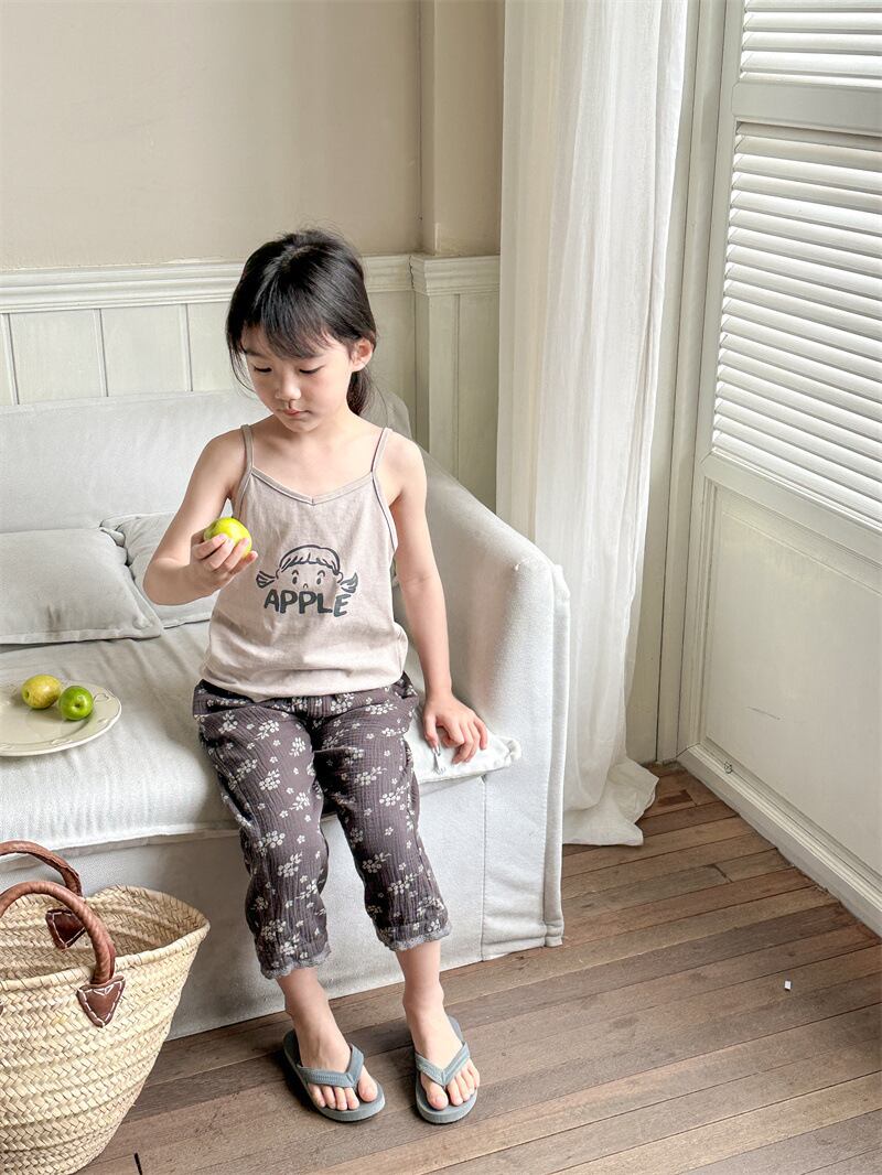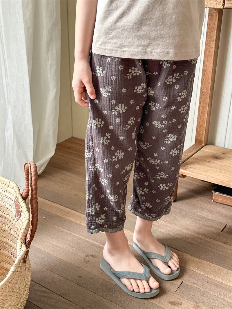 《取寄》 コットンリネンの花柄リラクシングパンツ (全2色) ADBB 2024夏 韓国子供服 レース ガーゼ ボタニカル柄 ズボン