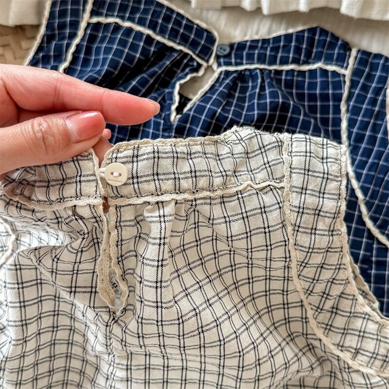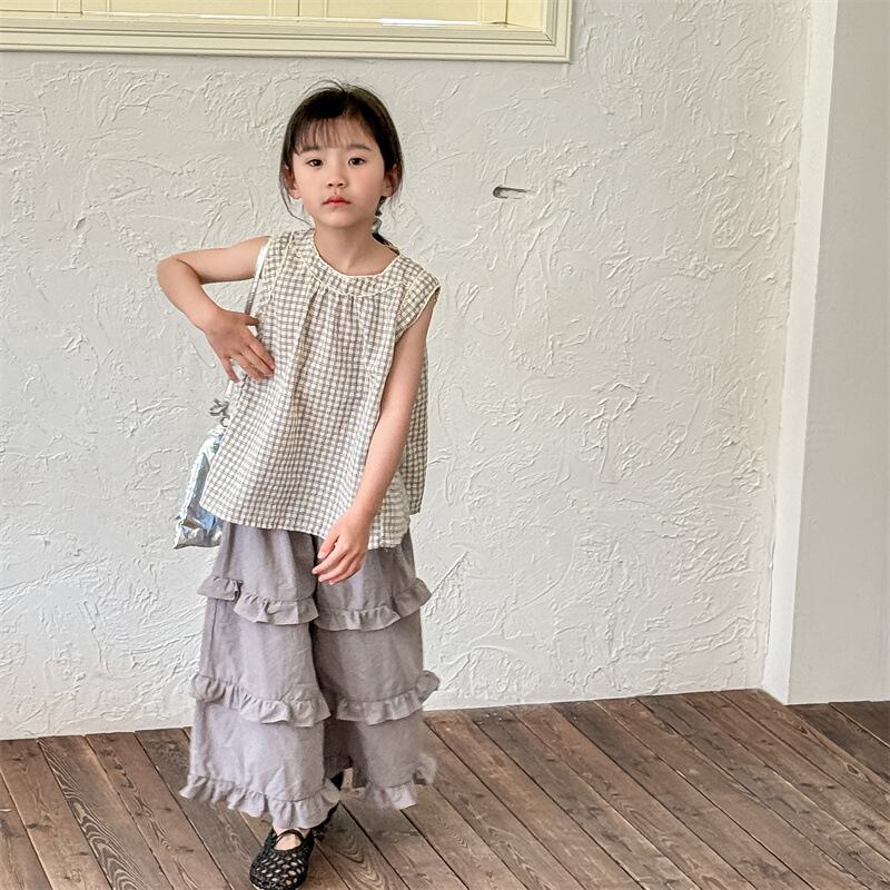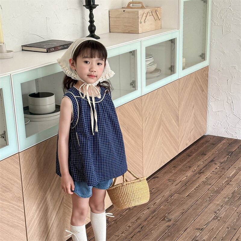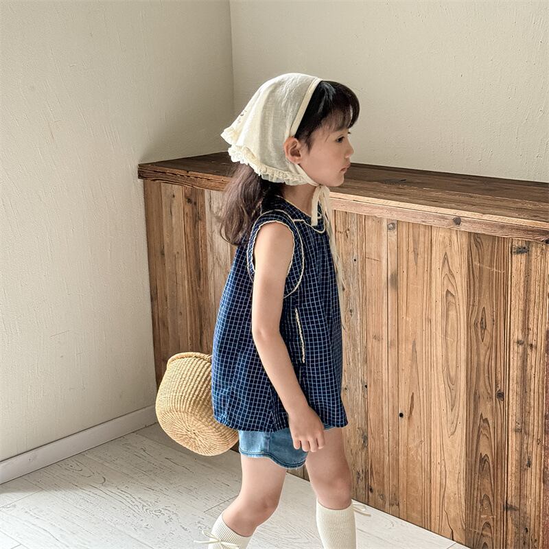 《取寄》 グリッドチェックのノースリーブトップス (全2色) ADBB 2024夏 韓国子供服 カットソー トップス チェック柄