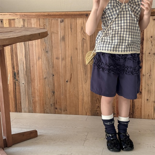 《取寄》フリルハーフパンツ (全2色) ADBB 2024夏 韓国子供服 ズボン 短パン 5分丈パンツ 女の子