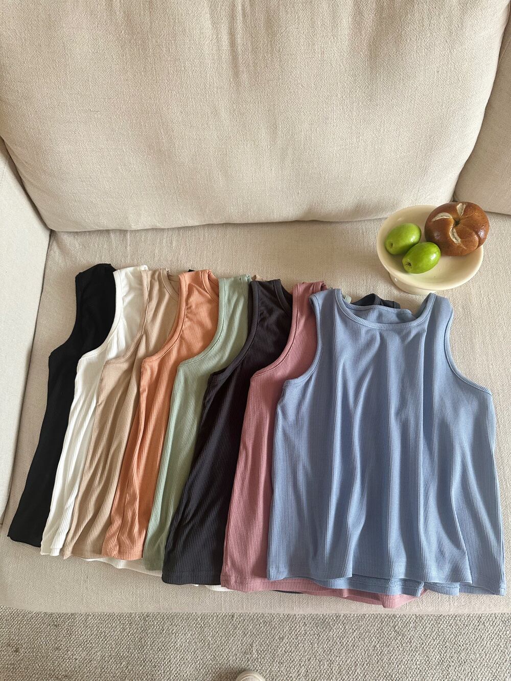 《取寄》 ベーシックカラーさらさらリブタンクトップ(全8色) KMAI 2024夏 韓国子供服 ノースリーブ タンク キャミソール インナー くすみカラー ストレッチ 伸縮性
