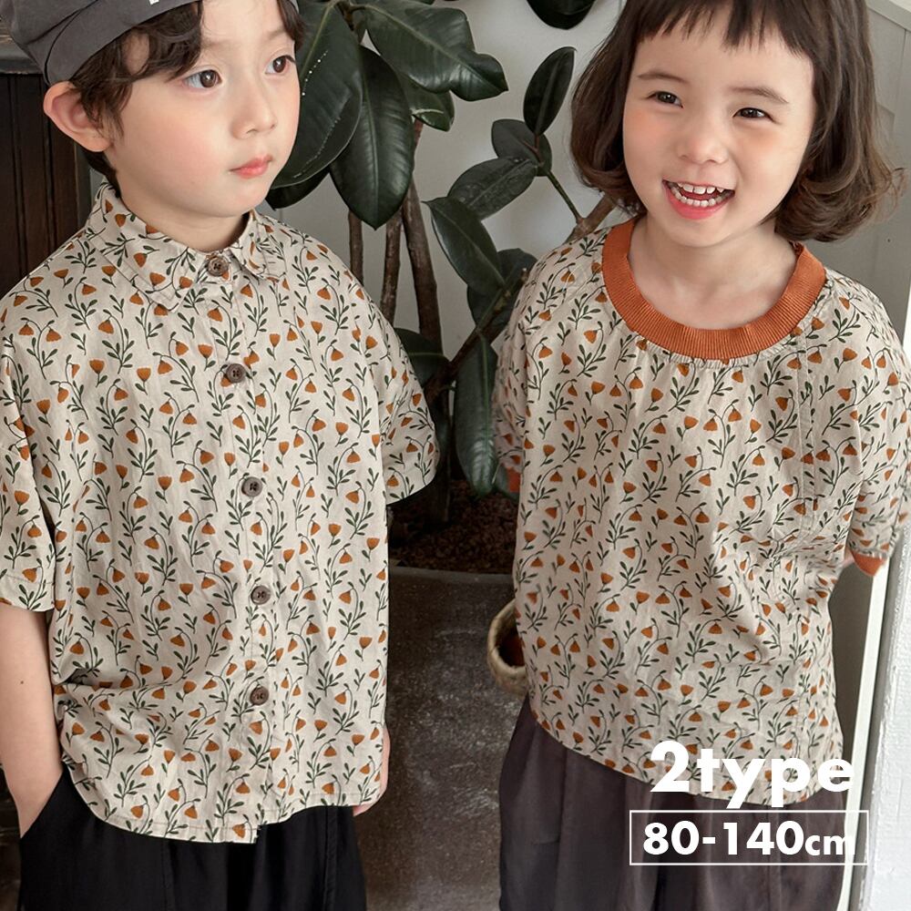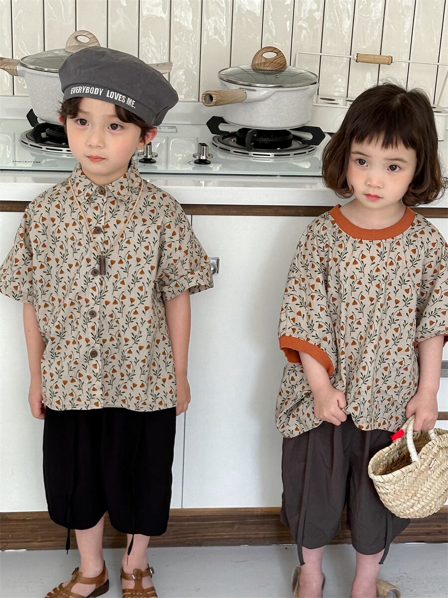 ・ レトロ小花柄シャツとTシャツ (全2種) JIAY 2024夏 韓国子供服 リンガーTシャツ カットソー トップス 花柄 総柄 《取寄》